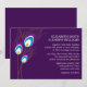 Une invitation élégante et classique présente une belle illustration vectorielle de plumes de paons sur un arrière - plan violet profond. Parfait pour les mariages, les douches nuptiales, les fêtes d'anniversaire, les sweets sixteens et plus encore !
