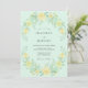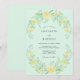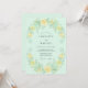 Cette création présente un fond vert menthe doux orné d'une délicate composition de roses jaunes caressées par le soleil et de feuillage vert sauge luxuriant. Le style aquarelle crée une atmosphère douce et aérienne parfaite pour un événement en plein air saisonnier. Les éléments botaniques florissants et les tons pastel doux évoquent un sentiment de nouveaux départs et d'élégance naturelle. Les feuilles de eucalyptus détaillées et les pétales complexes offrent une touche sophistiquée.