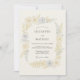 Cette conception présente une disposition délicate de fleurs aquarelles jaune doux et bleu pâle. De délicates fougères et brindilles feuillues créent une bordure botanique aérienne. La palette de jaune beurré et de bleu frais sur un fond crème évoque un matin printanier serein. Les fleurs d'anémone aquarelles offrent une esthétique légère et romantique pour un événement extérieur saisonnier.
