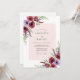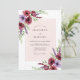 Cette conception présente une palette aquarelle romantique de bourgogne profond et de lavande douce. Des anémones frappantes et de délicates brindilles sont nichées parmi le feuillage vert sauge, créant une esthétique botanique gracieuse. Les tons roses doux rehaussent les grappes florales élégantes, ce qui la rend idéale pour un événement saisonnier sophistiqué.