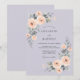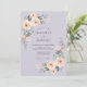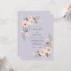 Cette conception présente un fond lavande doux accentué par de délicates fleurs aquarelles dans des nuances de pêche et d'abricot. Des roses élégantes et un feuillage vert luxuriant créent une atmosphère romantique parfaite pour un événement saisonnier. La palette de couleurs atténuées offre une esthétique sophistiquée et éthérée.