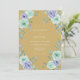 Cette création présente un riche fond doré orné de roses luxuriantes à l'aquarelle dans des teintes de lavande douce et de vert menthe. Des feuilles d'eucalyptus délicatement peintes et des brindilles botaniques accentuent la composition, créant une esthétique raffinée et élégante. L'œuvre d'art équilibre les tons métalliques chauds avec des éléments floraux aux tons frais pour une atmosphère romantique.