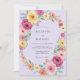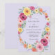 Un fond de lavande doux crée une scène sereine pour un épanouissement vibrant de fleurs à l'aquarelle. De luxuriantes roses aux teintes magenta, corail et jaune ensoleillé s'entrelacent avec un feuillage vert délicat. L'esthétique peinte à la main évoque une atmosphère romantique et joyeuse parfaite pour un événement saisonnier. Ce design capture l'essence d'un pré en fleurs sous un ciel lumineux.