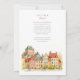 Annoncez votre journée spéciale avec ce charmant faire-part de mariage, qui met en vedette l'emblématique hôtel Château Frontenac et le pittoresque vieux village de Québec. L'avant présente le majestueux château avec son horizon coloré et les maisons charmantes au premier plan, rendues dans un style d'aquarelle douce et romantique. La scène raconte l'histoire et la beauté de cette destination canadienne. L'envers, conçu pour "The Finer Details", offre une autre vue. Cette invitation est parfaite pour un mariage de destination à Québec, une fête d'automne ou d'hiver, ou pour tout couple qui apprécie l'histoire, la beauté architecturale et une esthétique européenne classique.