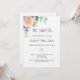 Un arrière - plan blanc chic. Décoré d'or rose et de fleurs roses rousses, de fleurs roses et de feuilles d'eucalyptus vert aquarellés, de sprigs, de verdure et d'une fausse feuille d'or. Personnalisez et ajoutez vos noms et les détails. Lettres noires et vertes.
