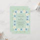 Cette création présente un fond vert menthe doux orné d'un arrangement de délicates fleurs aquarellées. L'œuvre comprend des pavots bleu pâle et crème accentués par un feuillage vert tendre. Elle évoque une atmosphère romantique et sereine parfaite pour une cérémonie de mariage printanière. La palette pastel crée une esthétique fraîche et aérienne.