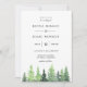 Bois rustique aquarelle paysage forestier, thème de la nature faire-part de mariage. Style de design de typographie simple et élégant modèle et coordination de l'appui vert foncé de la forêt.
