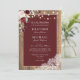 Ooh, nous sommes si heureux avec cette traditionnelle burgundy botanique bordeaux, faire-part de mariage rustique! Ce magnifique design élégant avec un script en lettres blanches, arrière - plan bordeaux, dentelle et un motif botanique bordeaux. Doté d'une texture de bois de canne miel, d'une dentelle d'Alençon faux français et de lampes à cordes chaudes et brillantes. Une partie d'une suite mariage que nous espérons que vous aimez autant que nous : https://www.zazzle.com/store/elegant_invites_/gifts?cg=196508395413584683&pburl= Copyright Elegant Invitations, tous droits réservés.