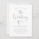 Gris argenté et blanc (les couleurs peuvent être modifiées), les invitations de mariage présentent un design typographique élégant avec un script de calligraphie chic et un accent du coeur. Le texte personnalisé simple et élégant qui peut être personnalisé pour les invités invitations à se joindre à votre célébration mariage, y compris les noms du couple et tous les détails importants de la cérémonie mariage.
