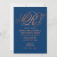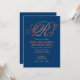 Cette élégante invitation a un monogramme entrelacé en caractères de script dans les nuances de cuivre sur un arrière - plan bleu marine. L'arrière est bleu marine.