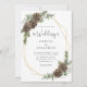 Avec son écriture moderne et élégante, cette faire-part de mariage à thème hivernal présente un cadre géométrique doré décoré de verdure aquarelle, de cônes de pin et de branches à feuillage persistant hivernales, agrémenté de baies de neige. Sur le dos est une texture d'aquarelle verte. Trouvez les cartes rsvp et boîtier correspondants, ainsi que d'autres produits correspondants, dans la collection. Message-moi par Zazzle Conversation si vous avez besoin de modifications de conception ou plus de produits correspondants.