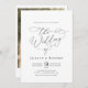 faire-part de mariage simple avec élégant script noir. Le texte, l'image et les couleurs peuvent être modifiés.