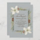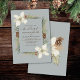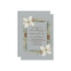 Cônes de pin d'hiver et fleurs blanches sur un gris clair avec élégant faire-part de mariage de script.