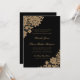 La suite Delicate présente des touches douces de dentelle dorée, du texte or mat, un script formel et des détails élégants. Idéal pour une réception de mariage ou une cérémonie d'église. L'arrière - plan d'invitation noir ajoute élégance et drame.