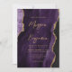 Cette élégante invitation de mariage présente une image arrière - plan d'agate d'aquarelle violette parée de parties scintillant en faux or. Le texte personnalisable combine écriture moderne chic dorée, cuivre et polices italiques. L'envers présente un design coordonné d'agate violet et or.