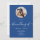 Simple et élégant script de photo bleu avec cette calligraphie classique et élégante le mariage de Script en bleu et blanc Ajouter la photo de couple dans un masque de cercle.