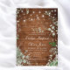 Dévoiler notre Faire-part de mariage Rustique personnalisée - un mélange harmonieux de charme de la nature et de design élégant. Contre un arrière - plan rustique en bois, cette invitation respire la chaleur et l'authenticité. De délicieux feuilles aquarelles encadrent les bords, ajoutant une touche de fraîcheur et de romantisme. Pour rehausser l'ambiance, des lampes à cordes scintillantes brillent gracieusement du haut, jetant une douce et accueillante lueur. Le texte principal, méticuleusement élaboré dans une police serif distinguée, fournit tous les détails essentiels de votre journée spéciale. Mais la pièce de résistance ? Les noms du futur couple, joliment inscrits dans un élégant script à la fois intemporel et romantique. Invitations vos proches avec une invitation qui n'est pas seulement un bout de papier, mais un souvenir précieux de votre histoire d'amour.