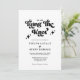 Ce "Retro Black and White Super Bold Script Faire-part de mariage" allie un charme vintage à une touche moderne. Avec un script audacieux et fluide et une palette monochrome classique, ce design crée un look élégant et intemporel. Parfait pour les couples qui veulent une invitation amusante mais élégante qui donne le ton pour une fête mariage mémorable.