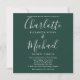 Doté d'élégants noms de style signature, cette faire-part de mariage élégante peut être personnalisée avec vos détails mariages dans la typographie moderne sur un arrière - plan vert émeraude. Vous pouvez customiser la couleur arrière - plan pour correspondre à votre thème mariage. Conçu par Thisisnotme©