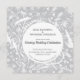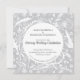 Jolies et élégantes silhouettes botaniques florales de la nature, feuillage blanc, feuilles et fleurs sur un arrière - plan gris argenté. Une magnifique invitation de réception de mariage de soirée coordonnée que vous pouvez modifier pour convenir à votre propre célébration. Art original de Nic Squirrell.