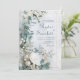 Invitez vos invités avec l'élégance sereine de ce magnifique design de mariage, qui ressemble à un jardin d'hiver tranquille animé. Le fond est un mélange doux et fluide de blanc glacial et de bleu pâle avec des veines de marbre subtiles, créant un arrière-plan tranquille et sophistiqué. Un cadre rectangulaire métallisé doré fin et délicat dessine élégamment les bords droit et supérieur, définissant magnifiquement l'espace de texte. Le coin est richement orné d'une illustration botanique luxuriante, comprenant de grandes fleurs blanches, du baby's breath blanc doux et des feuilles d'eucalyptus dramatiques dans des tons bleu-vert poussiéreux frais. Des accents métallisés dorés scintillants sont dispersés dans le feuillage, ainsi que des grappes de baies blanches réalistes, ajoutant une touche de luxe subtil. Cette suite de papiers exquise donne le ton parfait pour un mariage d'hiver, un événement sophistiqué au bord de la mer ou une cérémonie de jardin élégante, mettant en valeur une esthétique vraiment romantique et classique. Ce design charmant peut également servir magnifiquement pour