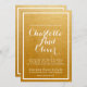 Ajoutez une touche d'élégance moderne à votre invitation de mariage avec un style de calligraphie à fioritures sur un fond métallisé doré brillant avec une typographie blanche et une superposition de bordure.