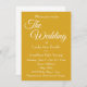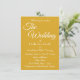 Style simple, faire-part de mariage qui dispose d'un arrière - plan de couleur jaune doré et tendance ainsi que les futurs noms de mariée et de mariée et la date de l'événement, l'heure, l'emplacement et le registre imprimé en blanc, stylisé. Personnalisez votre faire-part de mariage en remplaçant l'info par la vôtre. Sélectionnez le style et la quantité de papier d'invitation. Conçu pour coordonner avec notre collection de Mariages de style simple jaune doré.