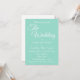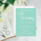 Style simple, faire-part de mariage qui comprend un arrière - plan de couleur de mer tendance, ainsi que les futurs noms de mariée et de mariée et la date de l'événement, l'heure, l'emplacement et le registre imprimé en blanc, stylisé. Personnalisez votre faire-part de mariage en remplaçant l'info par la vôtre. Sélectionnez le style et la quantité de papier d'invitation. Conçu pour coordonner avec notre collection Seafoam Simple Style Mariage.