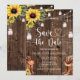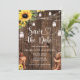 Faites une première impression mémorable avec cette superbe carte "Save the Date" de mariage western rustique aux tournesols ! Elle présente des tournesols aquarelles vibrants, des lanternes en bocaux Mason lumineux, des guirlandes lumineuses superposées, des bottes de cowboy et un chapeau de cowboy classique sur un fond en bois sombre chaud et riche. Le "Save the Date" western ultime qui combine parfaitement l'ensoleillement, la lueur rustique et l'esprit western - le tout sur une belle carte !