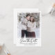 La photo de votre couple est présentée sur cette élégante carte de datation. Un cadre blanc simple lui donne l'importance qu'il mérite. Enregistrer la date est écrit dans un texte moderne et tendance. Deux lignes de texte vous permettent de personnaliser votre message. Conçu pour embellir facilement n'importe quelle photo de style pour n'importe quelle saison. Très facile à customiser.