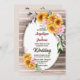Invitation vos amis et proches à votre mariage avec cette invitation rustique avec des tournesols vibrants, des roses roses délicates et des sprays de branches d'eucalyptus encadrant le texte pour aider à partager votre joie lors de votre journée spéciale.