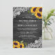 Invitation vos invités avec cet élégant faire-part de mariage rustique avec de beaux tournesols et dentelle avec typographie moderne sur un arrière - plan rustique en bois de grange. Ajoutez simplement les détails de votre événement sur ce modèle facile à utiliser pour en faire une invitation unique.