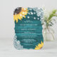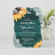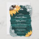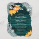Ce faire-part de mariage rustique turquoise avec des tournesols et de la dentelle rustique sur un arrière - plan en bois de grange est parfait pour inviter vos invités à votre mariage turquoise rustique inspiré des tournesols.