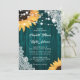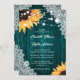 Cet élégant et romantique faire-part de mariage fleuri avec des tournesols contre une grange et arrière - plan dentelle est parfait pour inviter vos invités à votre turquoise fête de mariage rustique de campagne/jardin/grange inspirée des tournesols.