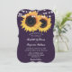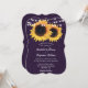Ce faire-part de mariage rustique à fleurs de campagne avec des tournesols contre un arrière - plan de burlap orné de lampes à cordes est parfait pour inviter vos invités à votre campagne violette, jardin, jardin ou fête de mariage de grange inspiré des tournesols.