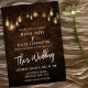 Cette carte de faire-part de mariage industrielle moderne est ornée d'un mur en brique foncée et riche, surmonté d'ampoules Edison. J'ai utilisé une police manuscrite moderne pour rendre un graphique représentant les mots "Leur Mariage". Votre propre texte est facilement ajouté pour customiser ce design aussi peu ou pas que vous le souhaitez. Utilisez les champs modèle pour simplement saisir vos données personnelles, puis cliquez pour customiser plus loin si vous souhaitez repositionner un calque déverrouillé ou modifier votre police. N'hésitez pas à me contacter pour des demandes spéciales ou pour obtenir de l'aide sur la personnalisation. // 106 //