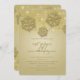 Moderne et élégant modèle d'"Invitation de mariage de vacances or Sauver la date", avec des flocons de neige et des lumières de paillettes dorées sur fond noir.