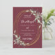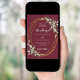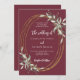Un arrière - plan bordeaux. Décoré avec verdure et cadre ovale doré. Personnalisez et ajoutez vos noms et détails.