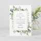 Faire-part de mariage avec des feuilles d'eucalyptus aquarelle et succulents avec une bordure d'accent or. Customisez avec vos informations pour le couple. Cliquez sur "cliquer pour customiser plus loin" pour modifier le style, la taille ou la couleur de la police.