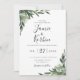 Cadre feuillage vert feuillu rustique chic aquarelle, faire-part de mariage. Support de couleur vert forêt solide, modèle de typographie de style design simple.