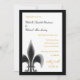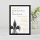 Ces Invitations de mariage Décontractées Fleur de Lis comportent une seule Fleur de Lis dans le coin inférieur gauche. En noir et blanc, avec du lettrage noir et or. Remplissez vos informations mariages à l'aide du modèle, ou cliquez sur "customiser" pour apporter des modifications plus détaillées à la position du texte ou à la police et à la couleur de la police.