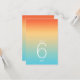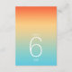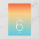 L'arrière - plan de toutes les pièces de cet ensemble mariage est un dégradé de couleurs qui attire l'attention, de la tangerine orange au beurre jaune au turquoise. La carte de numéros de table mariage présentée ici présente un design élégant et moderne et une police sans serif contemporaine pour ajouter à son attrait. Ajoutez facilement les numéros de table, les initiales et la date du mariage à l'aide du modèle fourni. Recherchez ID741 pour voir l'ensemble complet des produits correspondants dans le ciel tropical ou choisissez l'une des autres combinaisons de dégradé disponibles pour convenir à votre palette de couleurs mariages.
