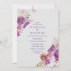 Un art floral à la main peint à la main et charmant, avec des fleurs violettes façonnées magnifiquement. L'arrière - plan est violet clair, le centre dispose d'un espace circulaire pour personnaliser vos informations. La police est une couleur mauve douce. Sur le dos se trouve un graphique floral violet. Un design élégant, personnalisez votre faire-part de mariage dès aujourd'hui !