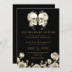 Invitation Mariage des crânes floraux gothiques noirs et or