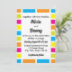 Stripes colorées Faire-part de mariage d'été conçu par Nisha Prabhu. Entièrement Personnalisable. Personnalisez avec vos détails. Préparez-vous à fêter dans le style avec ce magnifique et ludique faire-part de mariage d'été à rayures colorées. Le design est une explosion d'énergie et de joie, parfait pour une fête mariage animée et amusante. L'invitation présente une série de rayures audacieuses et attrayantes dans une variété de belles couleurs. Des jaunes vifs aux oranges en passant par les roses et les bleus vifs, ces rayures créent une atmosphère festive et joyeuse qui donne le ton à un mariage d'été rempli de rire et de bonheur. Le texte est affiché avec élégance contre un arrière - plan blanc propre, assurant que les détails importants de votre journée spéciale sont facilement lisibles. Le style de police choisi est moderne et élégant, ajoutant à l'ensemble de l'atmosphère contemporaine de l'invitation. Ce faire-part de mariage d'été à rayures colorées est parfait pour les couples qui veulent embrasser l'esprit de la saison et créer un événement mémorable et animé. Que vous planifiez un mariage sur la plage, une fête dans le jardin ou une fête de destination, cette invitation apportera un sentiment d'excitation et d'anticipation à vos invités. Préparez-vous à danser, à rire et à créer de beaux souvenirs avec vos proches en célébrant votre amour dans le style avec cette invitation dynamique et énergique. C'est une représentation parfaite de la joie et du bonheur que les mariages d'été apportent.