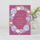 Cette conception présente un riche fond magenta orné d'une luxuriante composition de fleurs aquarellées. Des hortensias bleus délicats et des roses jaunes douces sont entrelacés avec un feuillage vert sauge pour créer une atmosphère vibrante et romantique. Les coups de pinceau artistiques évoquent un sentiment d'élégance fantaisiste, ce qui la rend idéale pour un événement estival lumineux.