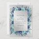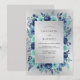 Cette conception présente une palette aux tons froids de roses bleus marine et de fleurs sarcelles sur un fond argenté texturé. Des fougères délicates et une verdure glacée complètent les tons floraux profonds pour créer une atmosphère saisonnière sophistiquée. L'arrangement botanique évoque un sentiment d'élégance hivernale sereine à travers ses couleurs riches et son style artistique.