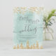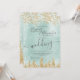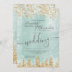 C'est le moment de célébrer votre thème mariage hiver merveilleux avec cette luxueuse parties scintillant dorée flocons de neige étincelants et la forêt de pins parties scintillant or sur un élégant arrière - plan métallique couleur bleu vert glacé festif, avec une typographie de police cool moderne.