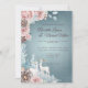 Célébrez votre mariage d'hiver avec ce design rustique et élégant, avec deux cerfs blancs dans une scène de verdure de forêt encadrée par des roses roses roses rousses, des fleurs de coton délicates et des cônes de pin florissants contre un arrière - plan d'aquarelle de lin.