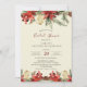 Cette invitation à la douche nuptiale d'hiver présente un cadre composé de branches de sapin luxuriantes, de fleurs de forêt bordeaux, de cônes et de brindilles sur un noble arrière - plan vintage en ivoire. Une belle invitation est parfaite pour un mariage d'hiver aux couleurs chaudes. Une atmosphère sensuelle et une invitation lumineuse pour les journées d'hiver.